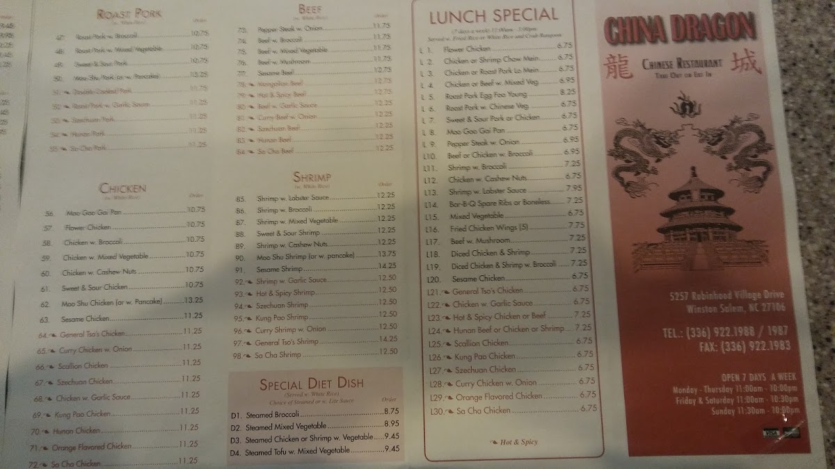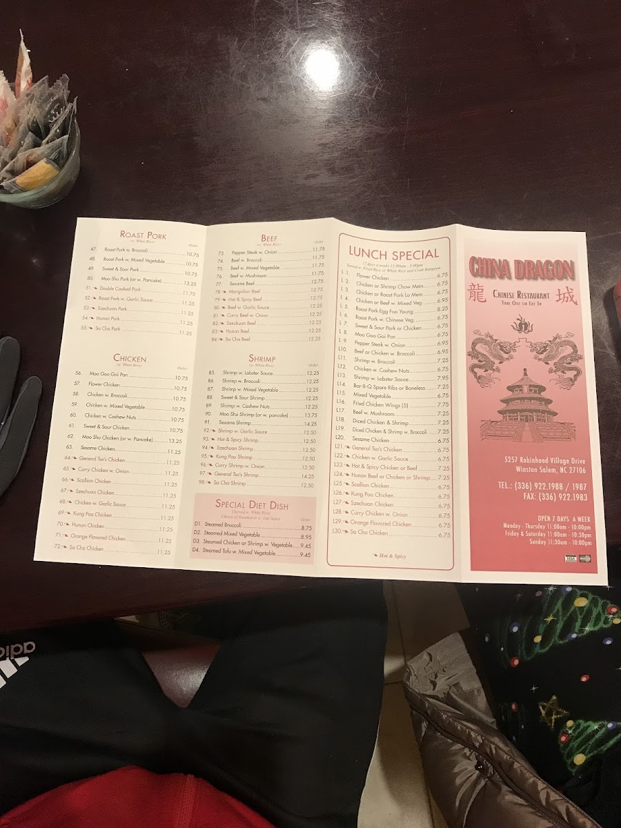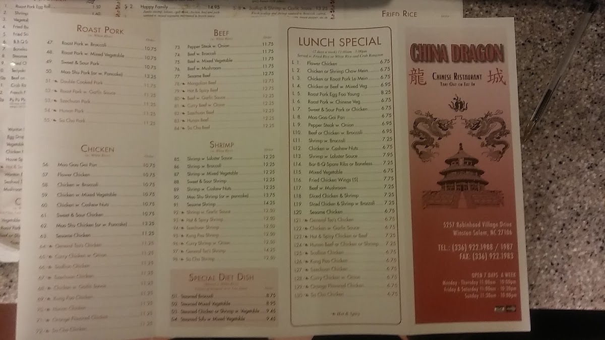 Welcome to China Dragon, a hidden gem located at 5257 Robinhood Village Dr, Winston-Salem, NC. This restaurant expertly combines traditional Chinese fare with Americanized favorites, making it a go-to spot for locals seeking delicious takeout.